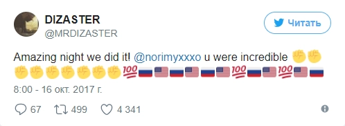 «Меня предупреждали, что, если я попытаюсь идти против русских, я проиграю. Вы шутите? Посмотрите на меня? Я что, похож на Хиллари Клинтон?» — обратился к залу Dizaster.