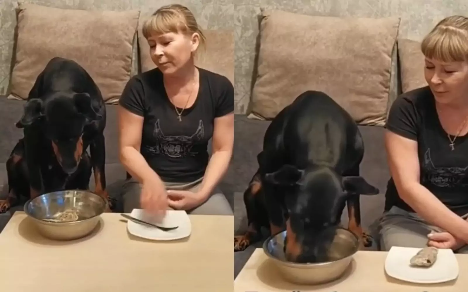Пользовательница TikTok под ником dobermanvega опубликовала видео со своей собакой по кличке Вега, которая выпросила у нее котлеты, но внезапно вернула их. «Я столько не хочу, мам, забери их и раздели нормально», — подумала собачка.