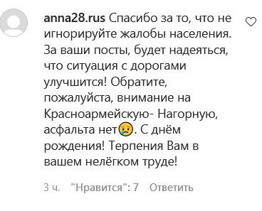 Подписчики Имамеева поблагодарили мэра за участие и обещание все исправить. Также они поздравляли его с днем рождения и сообщали о проблемных участках в Благовещенске.