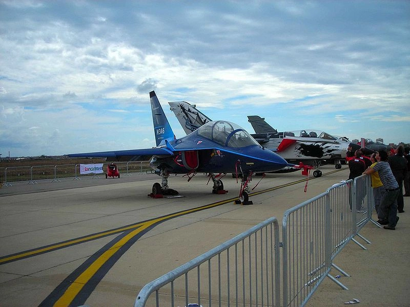 М-346 — это самолет, предназначенный для повышенной летной подготовки пилотов ВВС Италии и других стран. Первый полет он совершил в июле 2004-го. На самолете установлены два турбореактивных двигателя F-124-GA-200, которые позволяют ему достичь скорости до 1050 км/ч. УБС может нести ракеты и бомбы весом до 3 тонн на пяти узлах подкрыльевых подвесок.