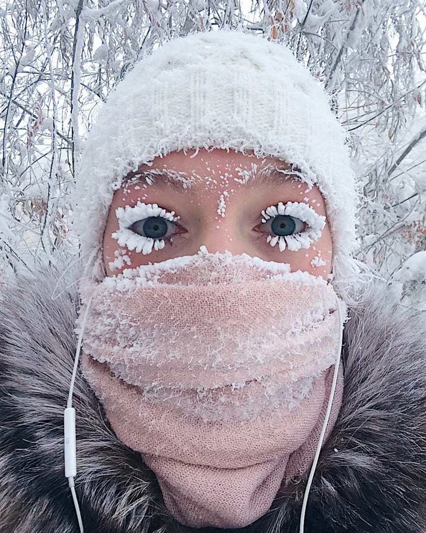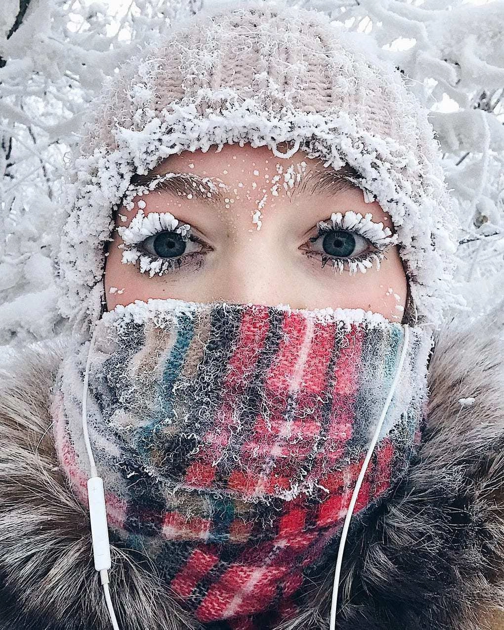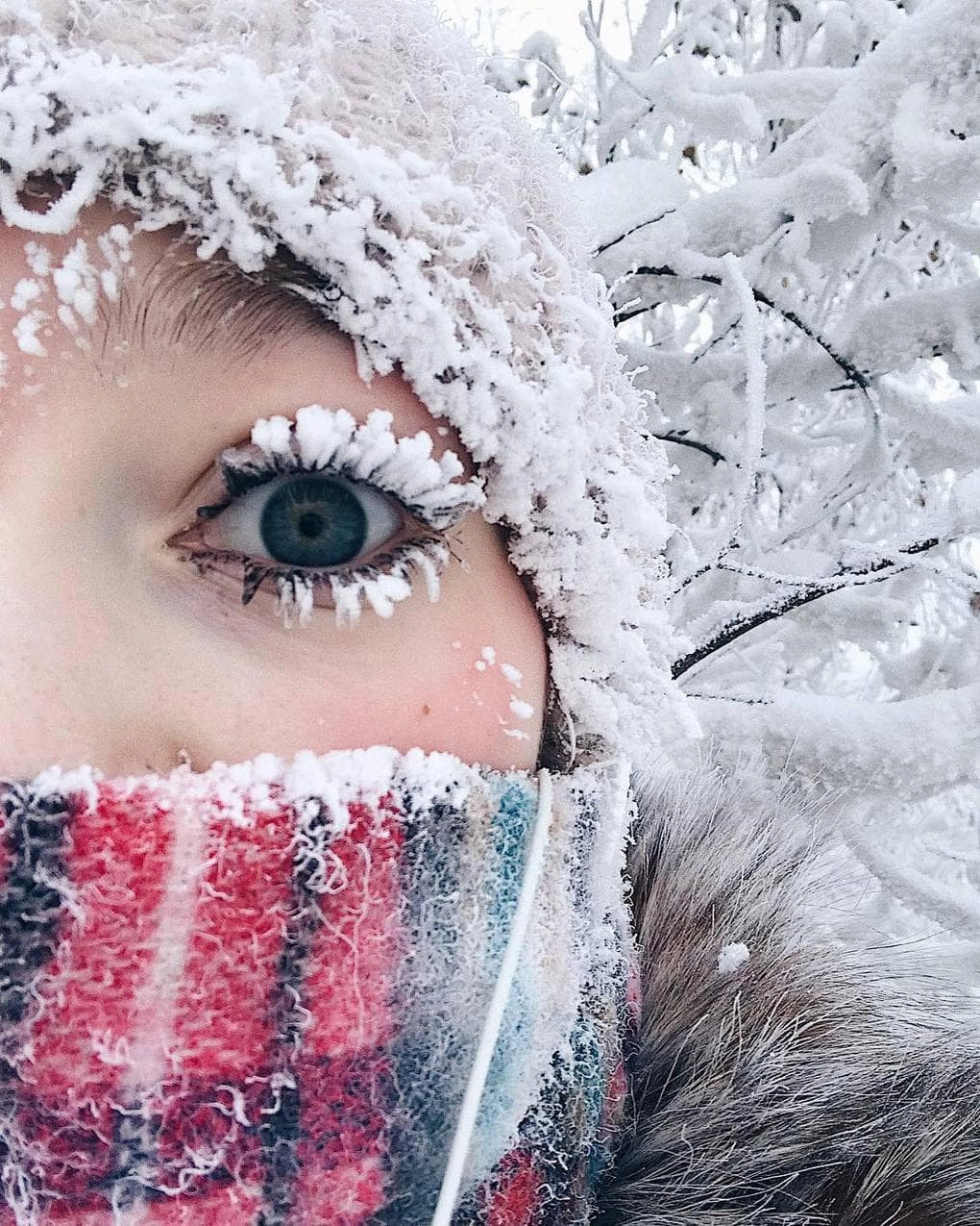 Жительница Якутии Анастасия Груздева прославилась в прошлом году, опубликовав свою фотографию с замёрзшими снежными ресницами. Тогда удивительный снимок быстро стал вирусным, девушка — героиней многочисленных публикаций в СМИ, а морозоустойчивость россиян в который раз шокировала жителей тёплых стран. Этой зимой якутянка решила повторить своё уже знаменитое фото.