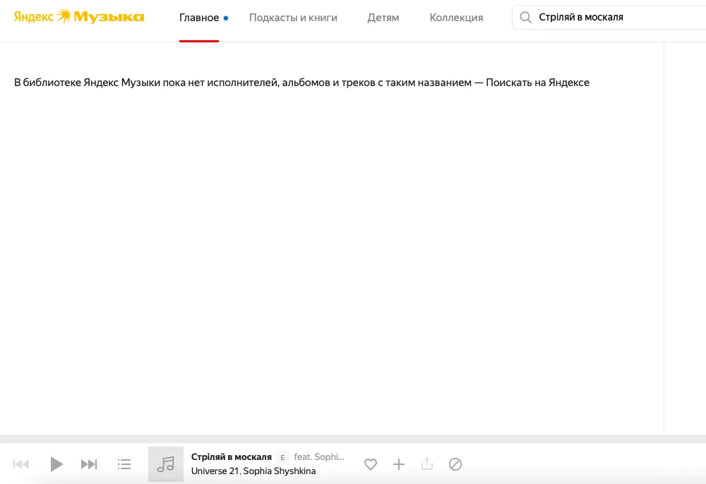Платформа «Яндекс.Музыка» оперативно удалила украинскую националистическую песню «Стріляй в москаля» после того, как на ситуацию обратили внимание журналисты. При этом другая похожая композиция под названием «Моє Серце (Азовсталь)» всё ещё присутствует на «Яндекс.Музыке».