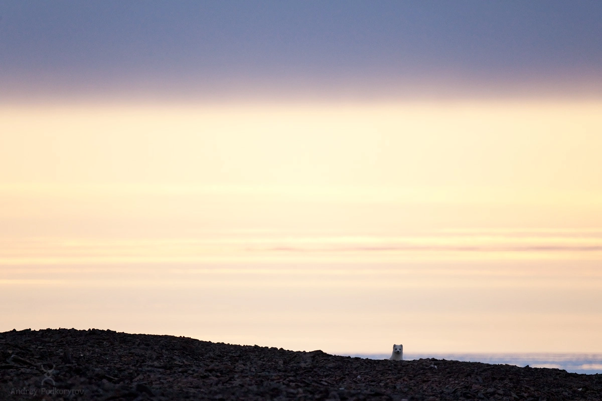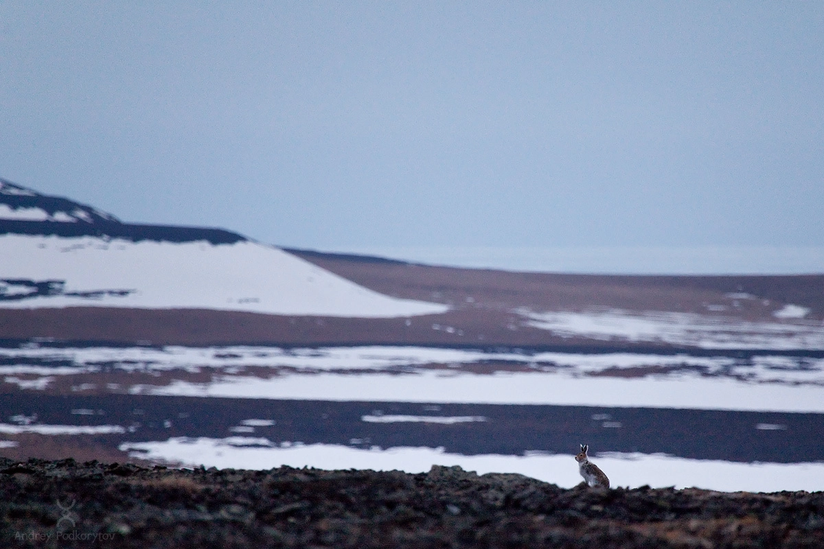 Подготовленный и усиленный, изо всех сил искал белых обитателей по окрестностям, но тщетно. Не вовремя. Судя по всему, медведи коллективно ушли по льду на север. Много всего интересного было рассказано и показано работниками станции, но это не на весь мир. Хорошо, что я не блогер, а просто фотограф. С некоторых пор блогеров на Валькаркае не любят. И правильно делают. Животных в этих местах много. Видел зайцев, песцов, полярную сову, журавлей, нерп. Снимать животных на ходу от бедра, без подготовки, сложно. А на подготовку в рамках прогулки времени нет. Поэтому все зверушки на снимках где-то на горизонте.