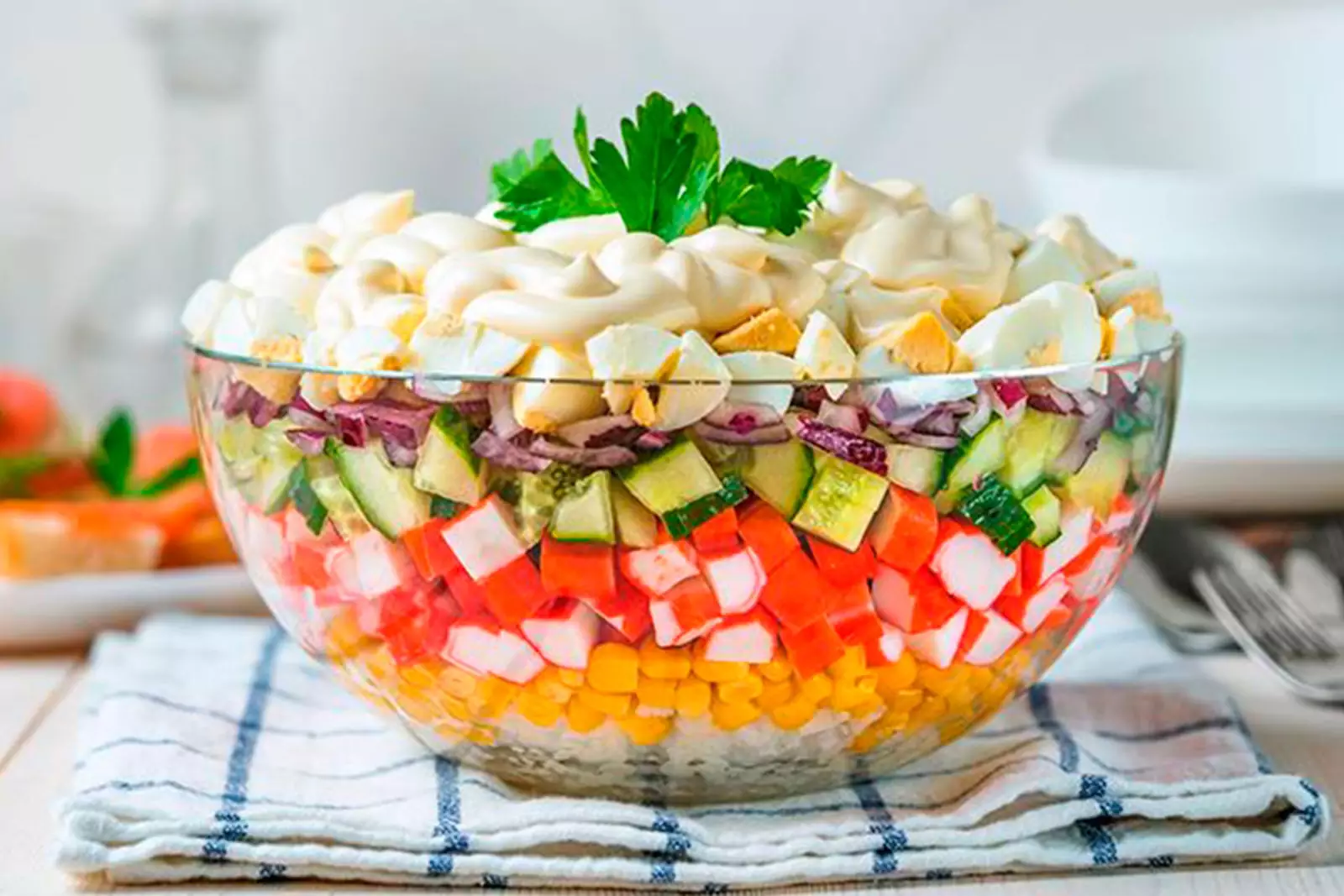 Салаты с крабовыми палочками — хит запросов в интернете. Вариантов — десятки. А почему бы и нет, ведь крабовые палочки — это вкусно и достаточно бюджетно. К тому же они сочетаются с большинством продуктов.