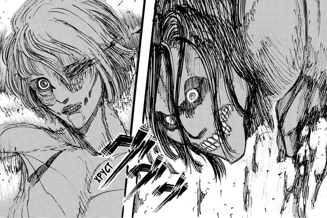 …Если предположить, что титаны, сломавшие стену, — это люди, скрывающиеся среди нас, то наша главнейшая задача — вычислить их и помешать разрушению стен. А если удастся их ещё и захватить, разведкорпус наконец получит то, что так долго искал. Ключ к тайне этого мира.