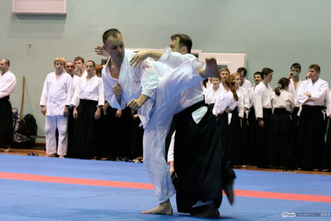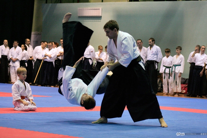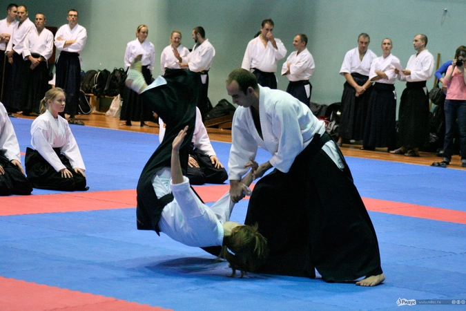 Запомнилась и девчушка из детской школы Айкидо, которая все время ходила, обнимая плюшевого мишку, и лишь изредка оставляла его на ковре во время тренировок. Когда пришло время показательных боев, она вышла с подружкой против пяти парней и на пару нахлобучила им так, что "мама не горюй". Причем двоих она разбросала по разным углам, не выпуская медвежонка из рук. Судейская коллегия смеялась до слез, а зал просто взорвался аплодисментами.