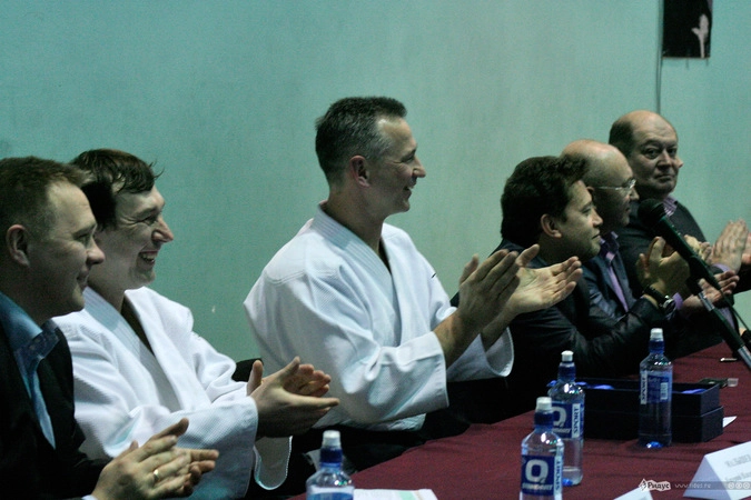 Как всегда, самый большой энтузиазм и желание проявляли совсем юные спортсмены. Так, на разминке пареньку лет семи папа – явно опытный спортсмен – пару минут старательно завязывал пояс «как надо», за что впоследствии и получил от благодарного сынули «по первое число».
