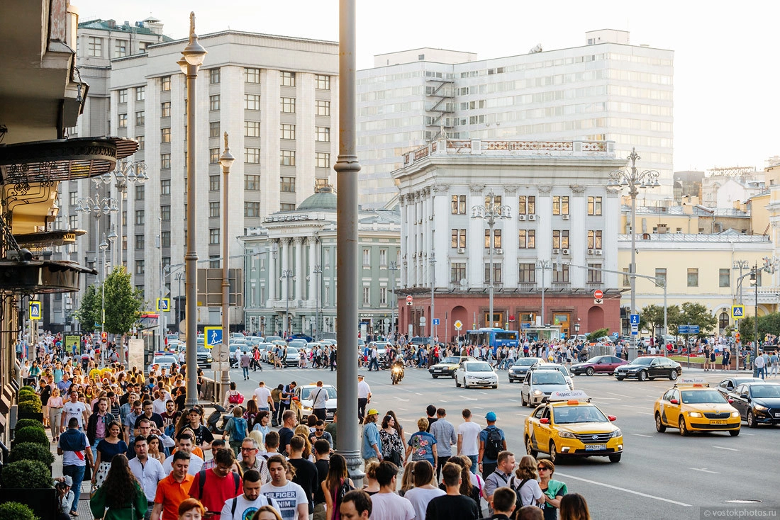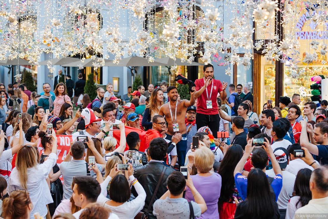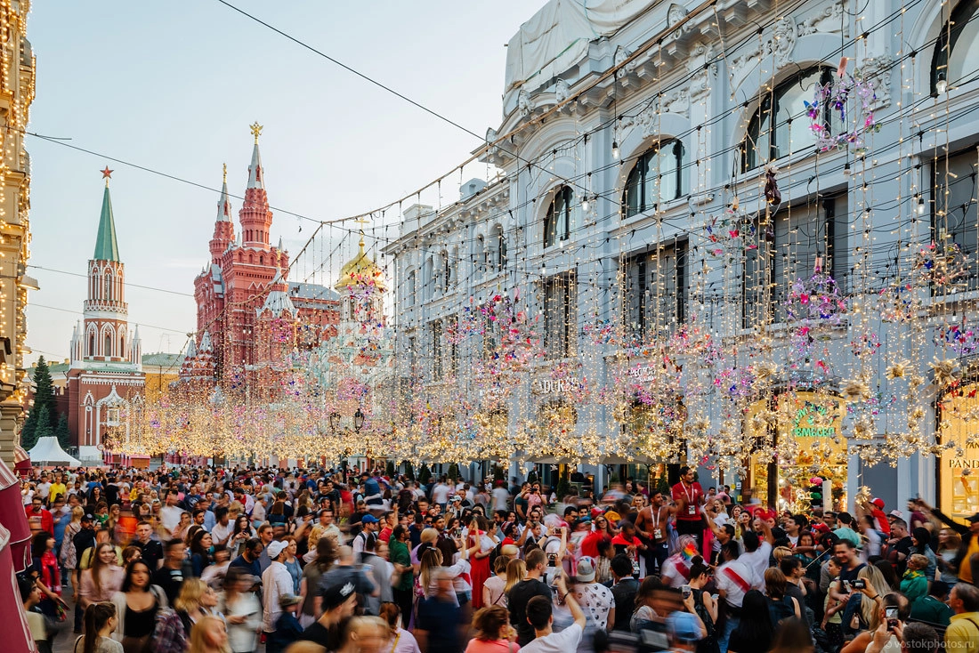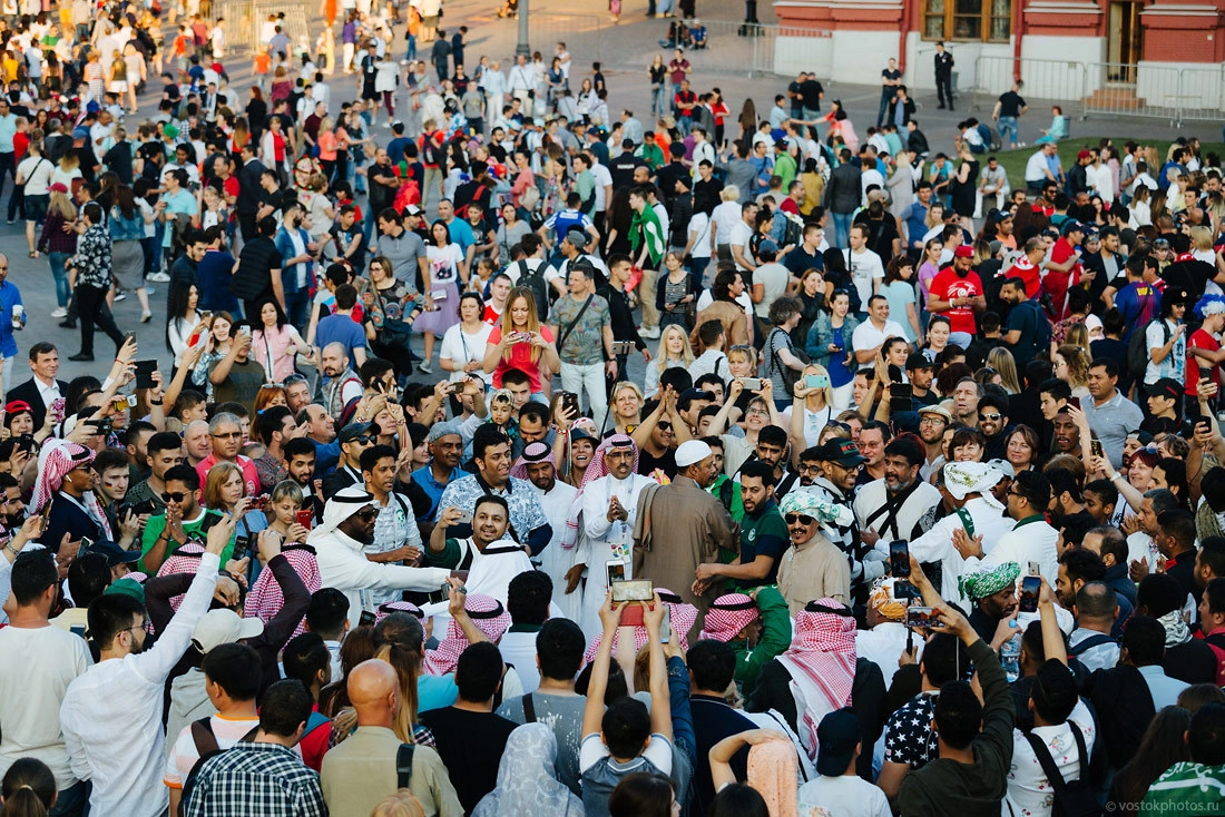 Тысячи туристов, болельщиков и фанатов с разных стран заполнили центральные улицы Москвы.