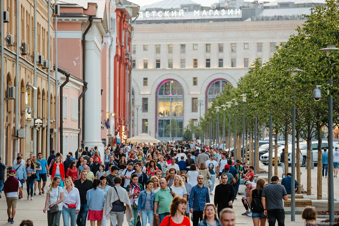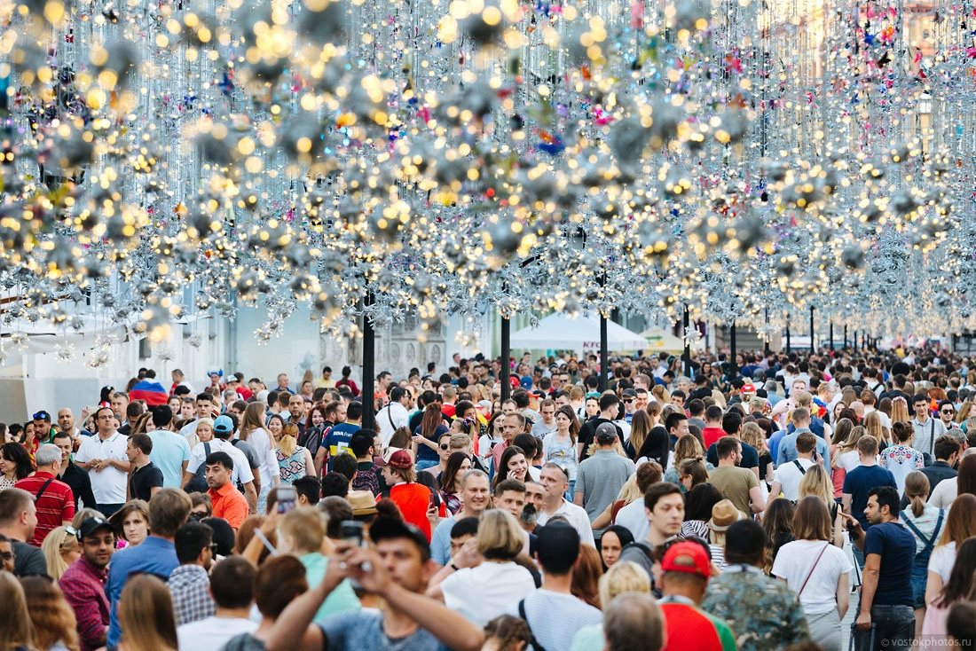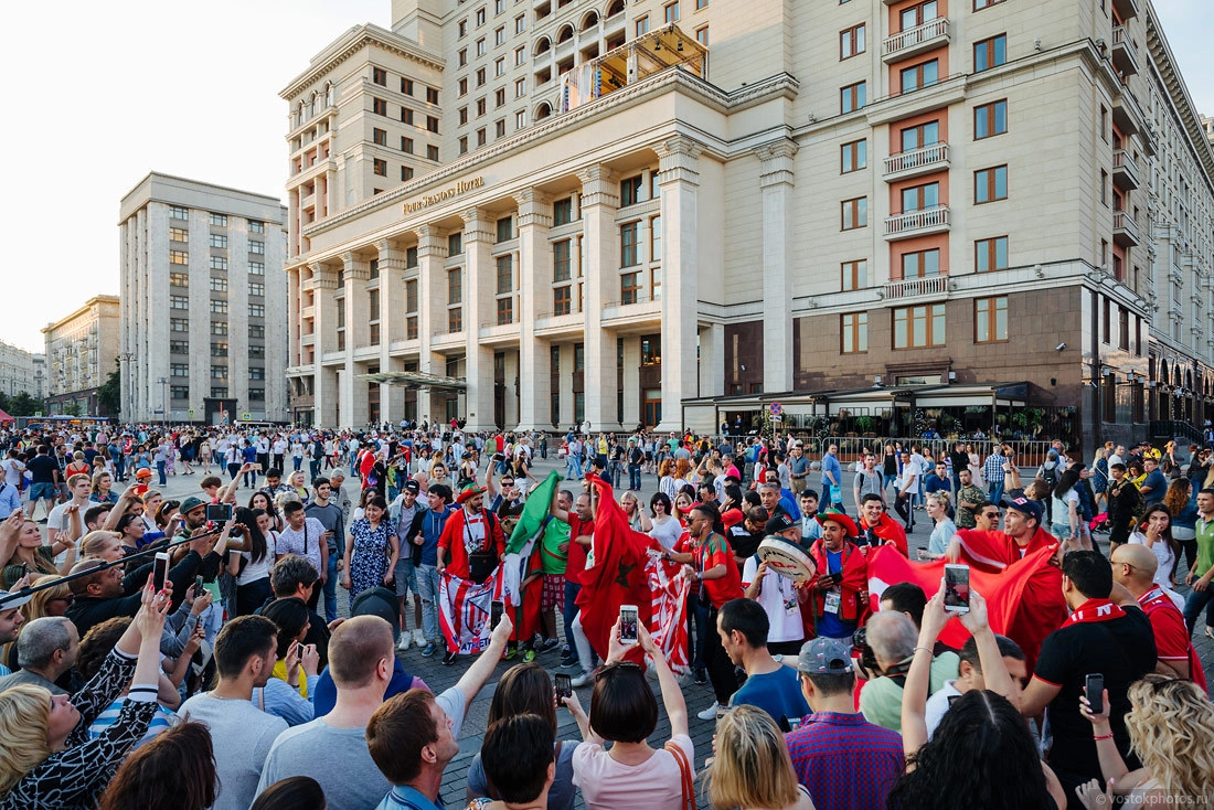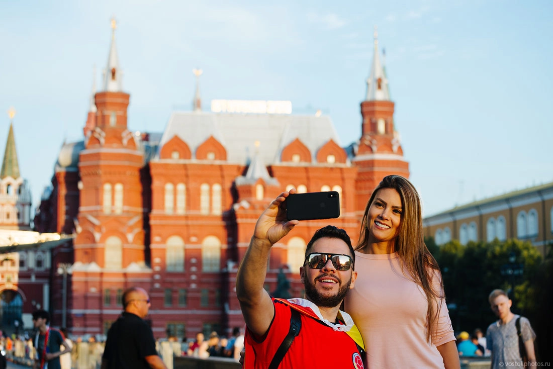 Тысячи туристов, болельщиков и фанатов с разных стран заполнили центральные улицы Москвы.
