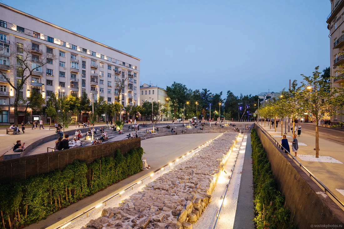 На Хохловской площади убрали вечный забор и сделали вот такую красоту. Здесь мы поужинали, и решили поехать домой.