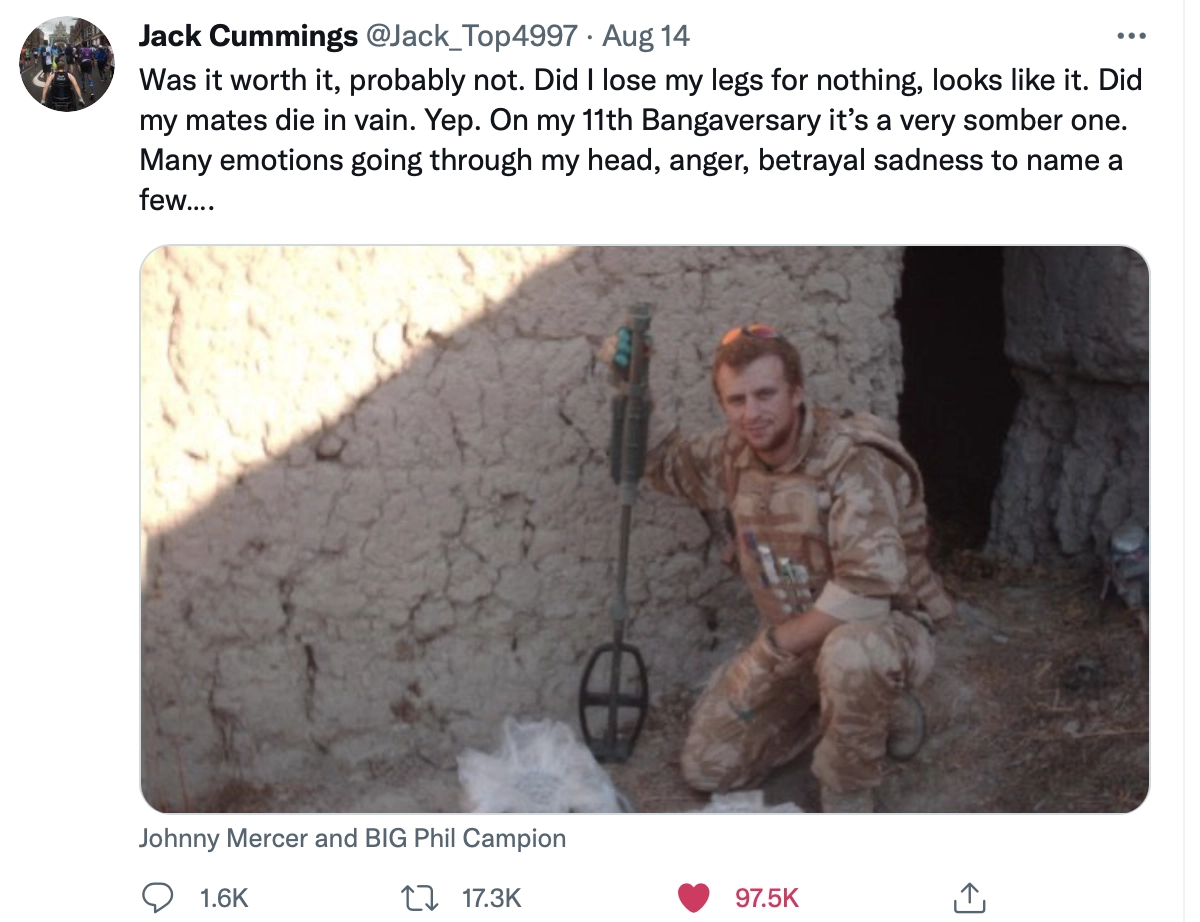 Да и британские военные, такие как потерявший ноги сапер Джек Каммингс, спрашивают, стоило ли оно того. И отвечают: