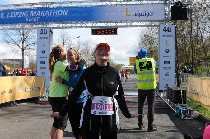 В юбилейный год на лейпцигский марафоне был поставлен мировой рекорд — жительница Берлина Сигрид Эйшнер (Sigrid Eichner) пробежала свой 1981 марафон. А ей 75 лет. Никто в мире еще не покорил столько длинных дистанций, как она.