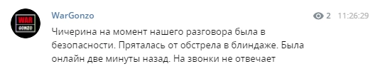 Коллега Пегова, корреспондент «Комсомольской правды» Александр Коц добавил, что Юлия Чичерина находится в укрытии в 40 километрах от Степанакерта — столицы непризнанной Нагорно-Карабахской Республики. Вместе с ней от обстрела спасается ее муж Сухраб Раджабов.