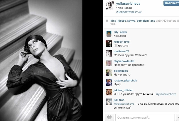 Имя фотографа, представившего Савичеву в столь неожиданном свете и ракурсе, артистка не назвала. В подписях к эффектным кадрам она была предельно лаконична, ограничившись лишь загадочными хештегами #непростотак и #noir. Однако среди комментаторов нашлись те, кто уже много лет следит за творчеством певицы. Они и сообщили, что эта фотосессия была сделана в 2008 году.