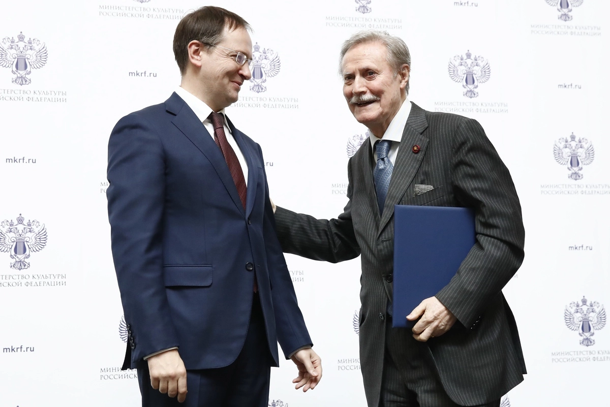 Министр культуры РФ Владимир Мединский подписал бессрочный контракт с художественным руководителем Малого театра, народным артистом СССР Юрием Соломиным.