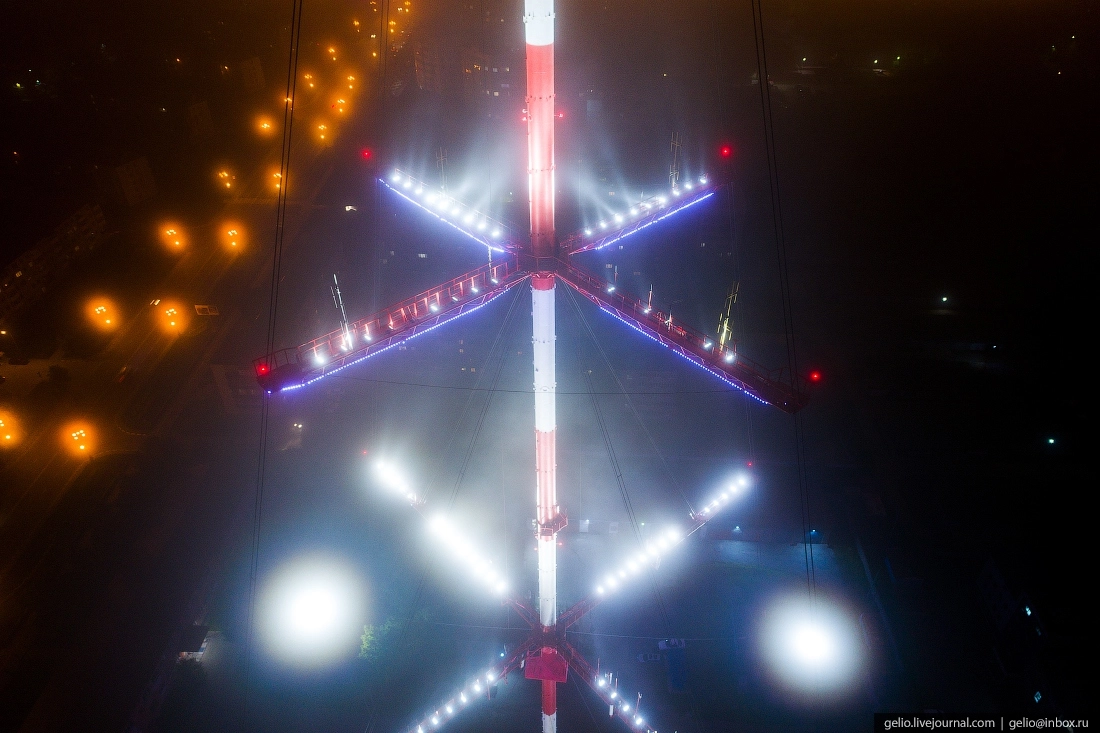 Южно-Сахалинская телебашня подсвечивается по вечерам.