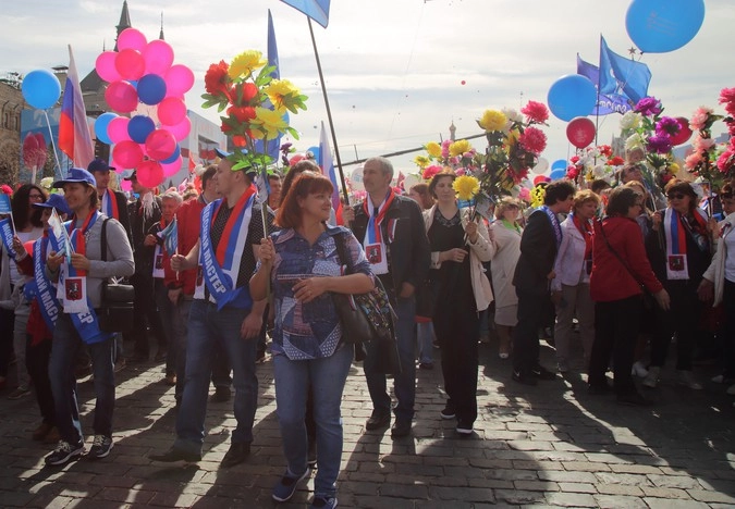 В шествии принимали участие мэр Москвы Сергей Собянин. председатель Московской федерации профсоюзов Михаил Антонцев и председатель Федерации независимых профсоюзов России Михаил Шмаков.