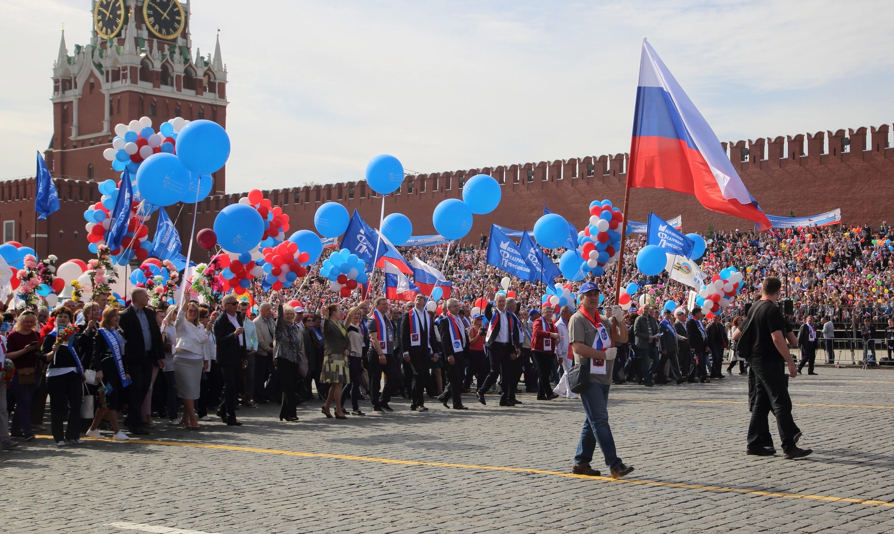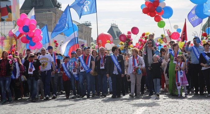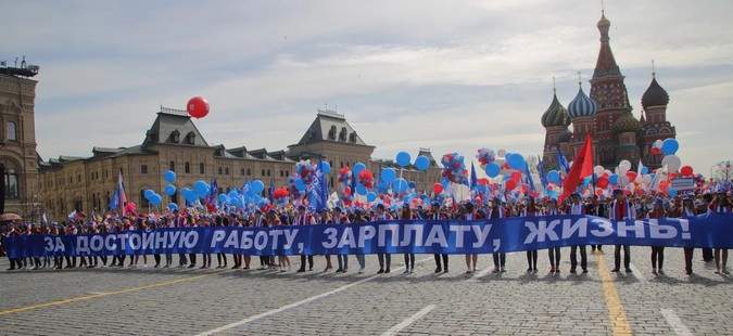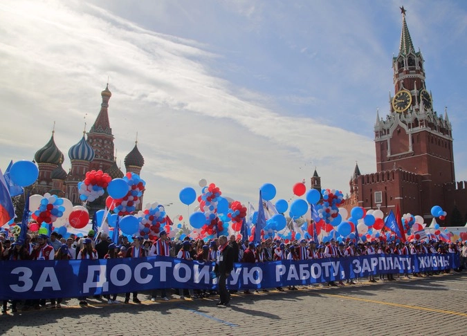В Москве прошла традиционная первомайская демонстрация профсоюзов. Акция состоялась на Красной площади и собрала, по данным МВД, около 130 тысяч человек.