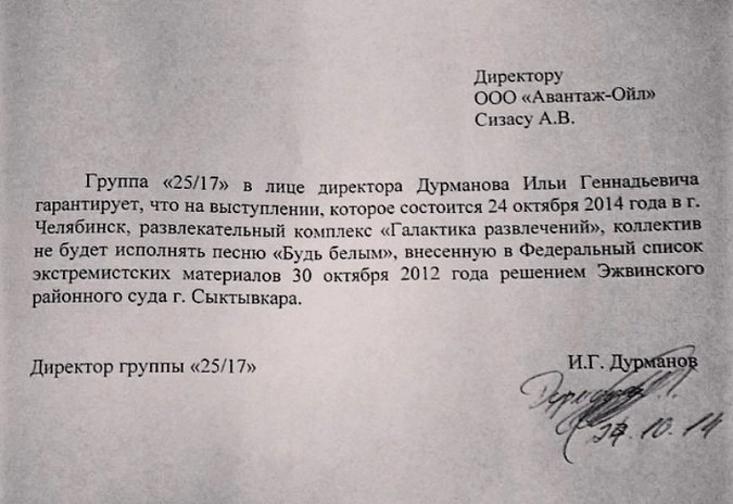 «При этом количество абсурда уже таково, что это ставит диагноз обществу — насколько оно заражено русофобией, или просто фигней, — заключает правозащитник. — Если группа 25/17 захочет пободаться, постоять за свой текст — то ПРПЦ с удовольствием окажет поддержку. Думаю, это будет интересное дело».