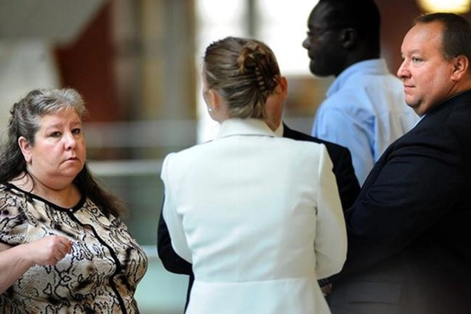 Линда (крайняя слева) и Джозеф (крайний справа) Мэйотты перед залом суда. © milforddailynews.com