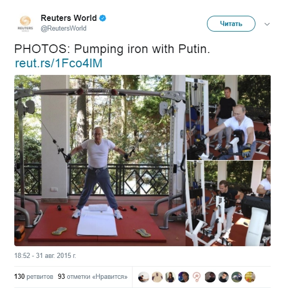 Все началось еще осенью 2015 года. Бывший посол США в России Майкл Макфол в Twitter прокомментировал фотографии агентства Reuters, на которых президент интенсивно тренируется в зале, и отметил, что «Путин, кажется, в очень хорошей форме».