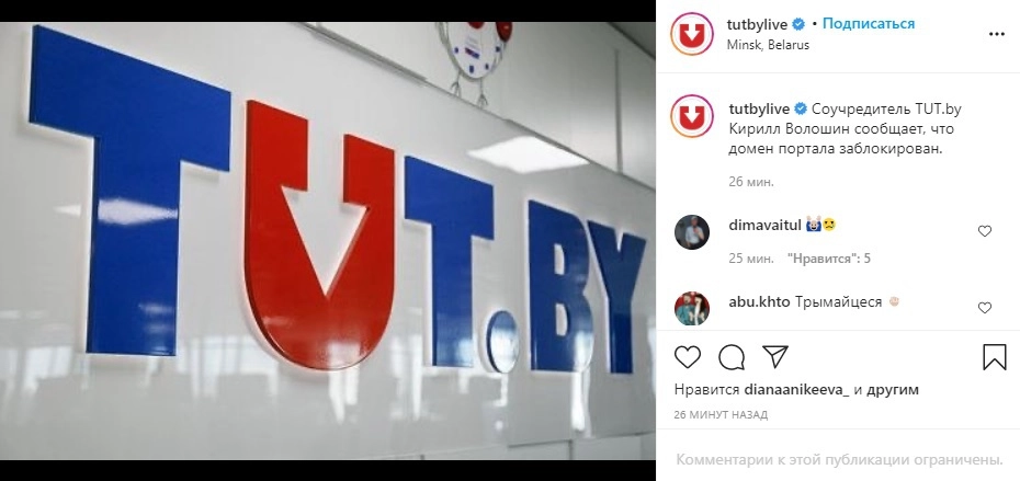 В Белоруссии 18 мая был заблокирован один из ведущих новостных ресурсов страны — tut.by. Об этом онлайн-издание сообщило в своем Instagram-аккаунте со слов Кирилла Волошина — одного из своих соучредителей.
