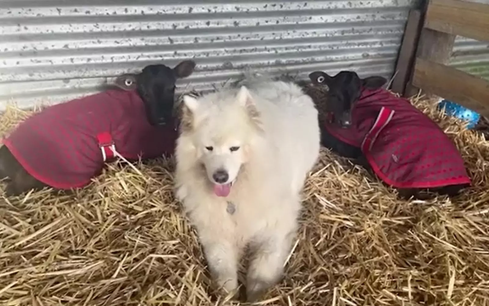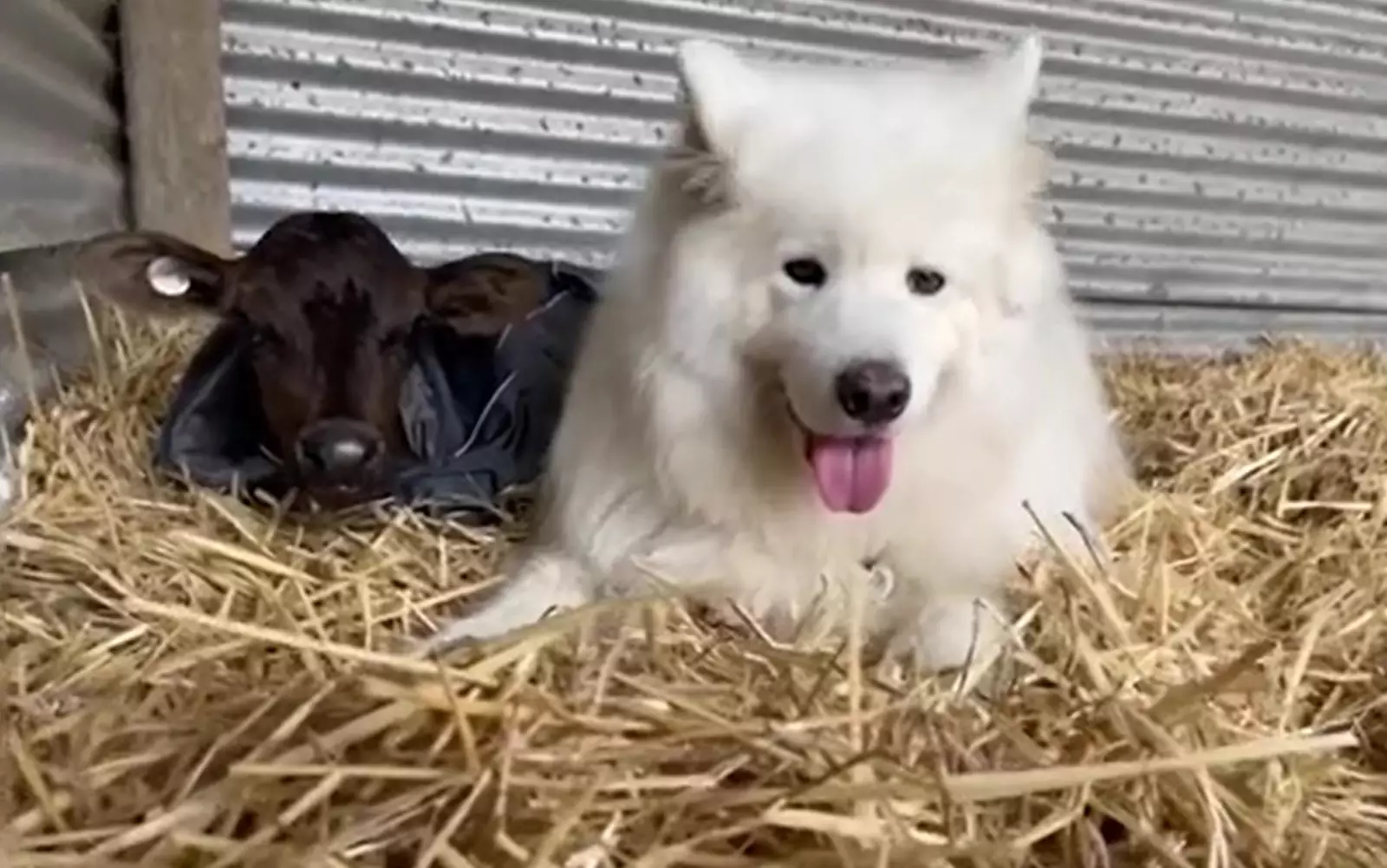 Белоснежный самоед из Австралии по кличке Снежок очень любит брать под свое крыло испуганных и робких телят, которые попадают в приют для коров «Till The Cow’s Come Home». Этим приютом уже много лет владеет хозяйка пёсиля 36-летняя Кристен Пьер, и она не перестает восхищаться заботливостью своего домашнего любимца.