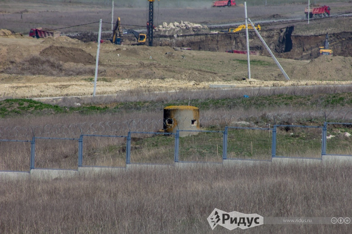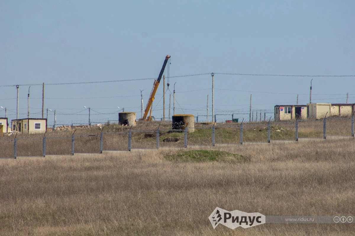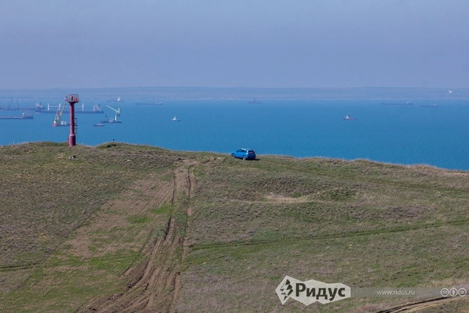 До съезда с асфальта нас ждало примерно 30 километров совсем плохой дороги, связано это с большим потоком грузовой и строительной техники. Мало того, что неподалеку ударными темпами идёт строительство Керченского моста, так еще на пути находится грузовой порт.