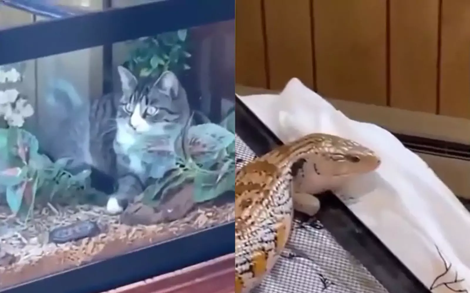 «Зачем мы это сделали?»: кошка и ящерица поменялись спальными местами