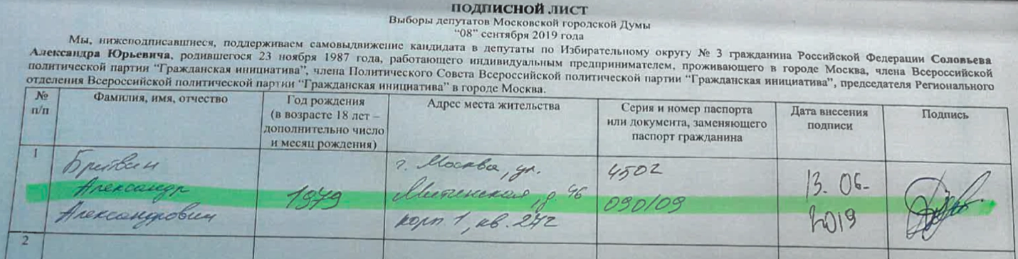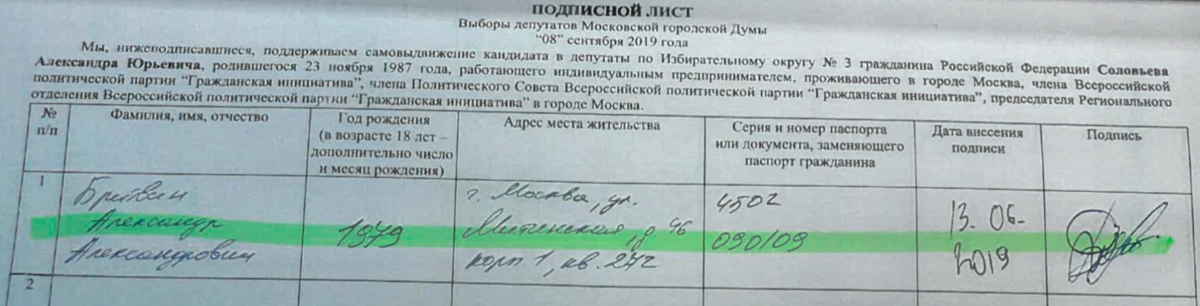 «Мертвецов» без труда нашли и в подписных листах кандидата Александра Соловьева.