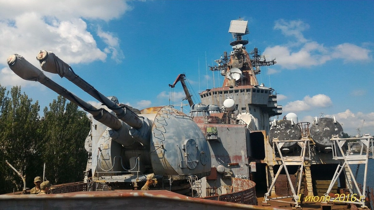 С 11 августа 1990 года огромный корабль стоит в гавани Николаевского судостроительного завода. С тех пор 3 раза собиралась и распускалась команда. Крейсер почти достроен, за исключением некоторого вооружения, которого нет в Украине. При этом силами команды и корабелов Николаевского завода крейсер постоянно поддерживался в исправно-рабочем состоянии. А государство тратило на это свыше 6 миллионов гривен каждый год.