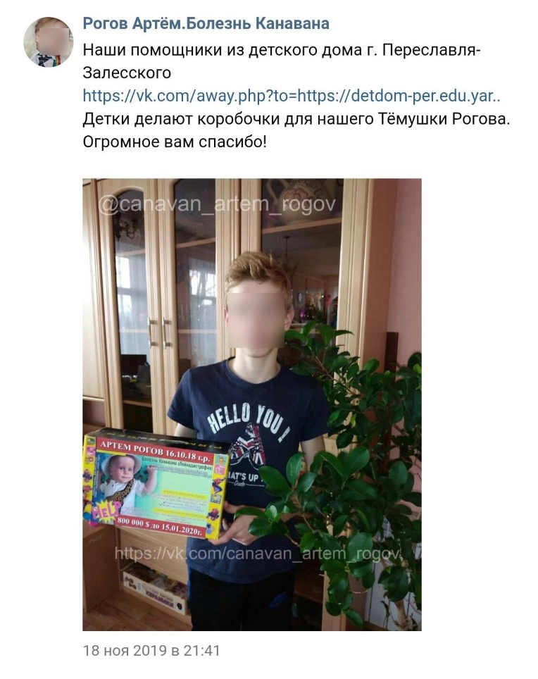 Напомню фабулу. В прошлом году я встретила на просторах Сети сбор на лечение болезни Канаван у маленького мальчика Артема Пронина. Собирали почти миллион долларов — 800 тысяч.