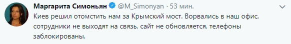 Информацию о блокировке офиса подтвердила главред МИА «Россия сегодня» Маргарита Симоньян. РИА Новости входит в структуру этого медиахолдинга.