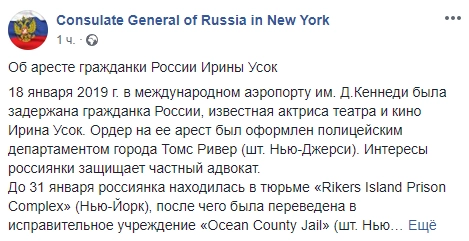 По данным российской дипмиссии, Усок задержали 18 января в международном аэропорту имени Кеннеди. До 31 января она содержалась в нью-йоркской тюрьме, после чего была переведена в исправительное учреждение в штате Нью-Джерси.