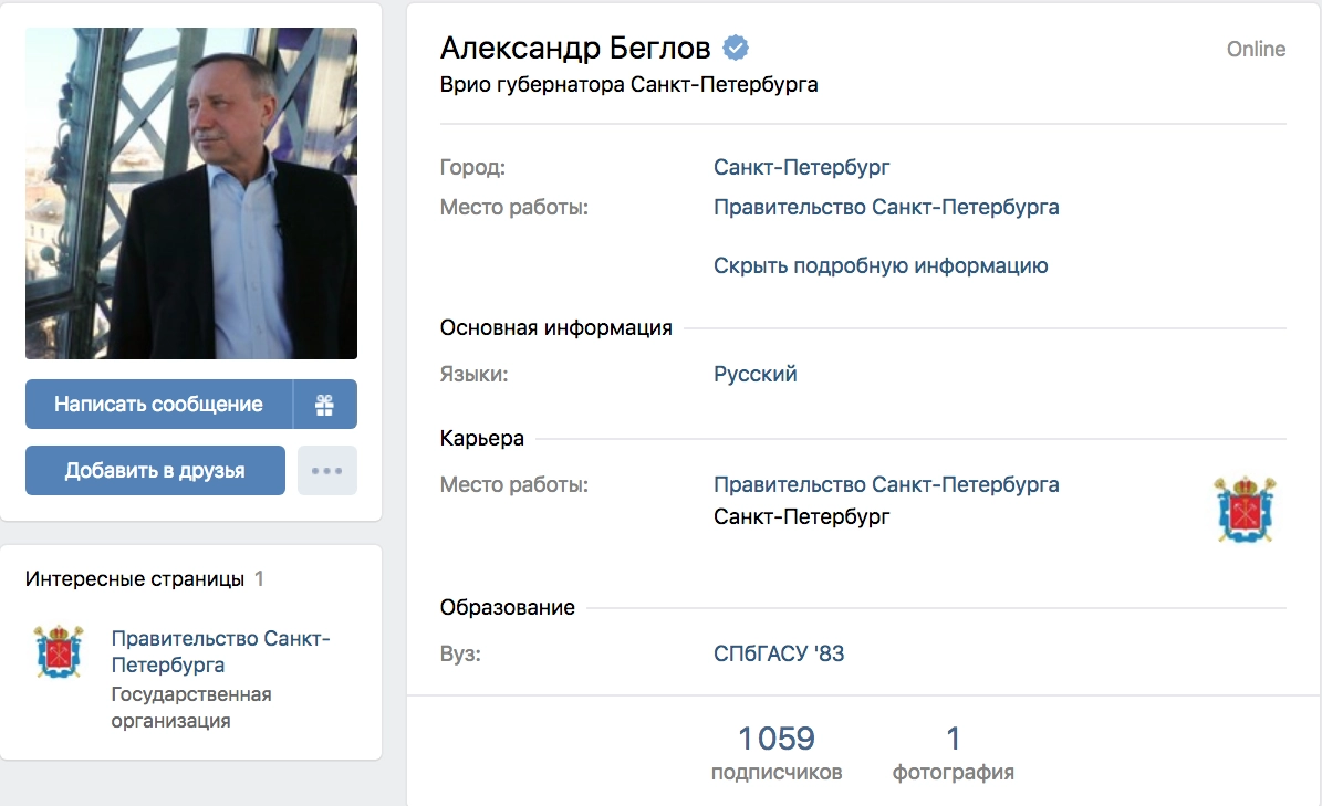 «Зафрендить Беглова»: глава Санкт-Петербурга поселился «ВКонтакте»