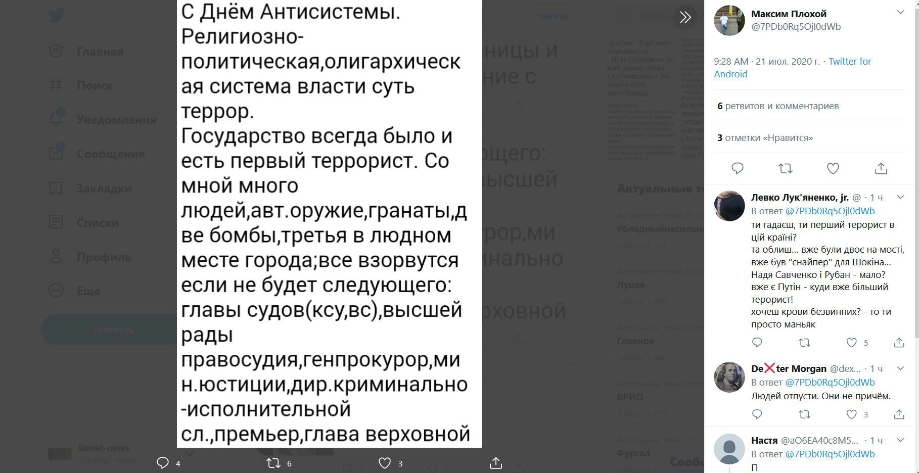 Ранее стали известны требования злоумышленника, захватившего автобус с людьми. В своем Twitter он писал, что хочет, чтобы министр внутренних дел Арсен Аваков и бывший глава государства Петр Порошенко сняли видео, в котором признают себя «террористами в законе».