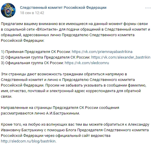 Через интернет-ресурс можно обратиться в приемную председателя Следственного комитета Российской Федерации. Нередко люди жалуются на волокиту при расследовании уголовных дел.