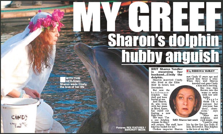 Потому что Синди — самец дельфина. Но этот факт не помешал Шэрон стать его женой, а затем и вдовой, поскольку дельфин умер всего через несколько месяцев после бракосочетания. После церемонии британка сказала: «Мой брак — это не извращенный поступок. Я действительно люблю этого дельфина, но не так, как любят мужчину. Это просто чистая любовь, которую я испытываю к этому животному».