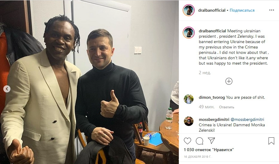 Мне был запрещен въезд на Украину из-за выступления на оспариваемом полуострове Крым. Благодаря вмешательству президента я смог попасть в страну, — написал Dr. Alban.