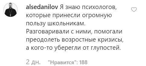 Священник Павел Островский усомнился в необходимости работы школьных психологов. Он также выразил сомнения в том, что «психология вообще научна».