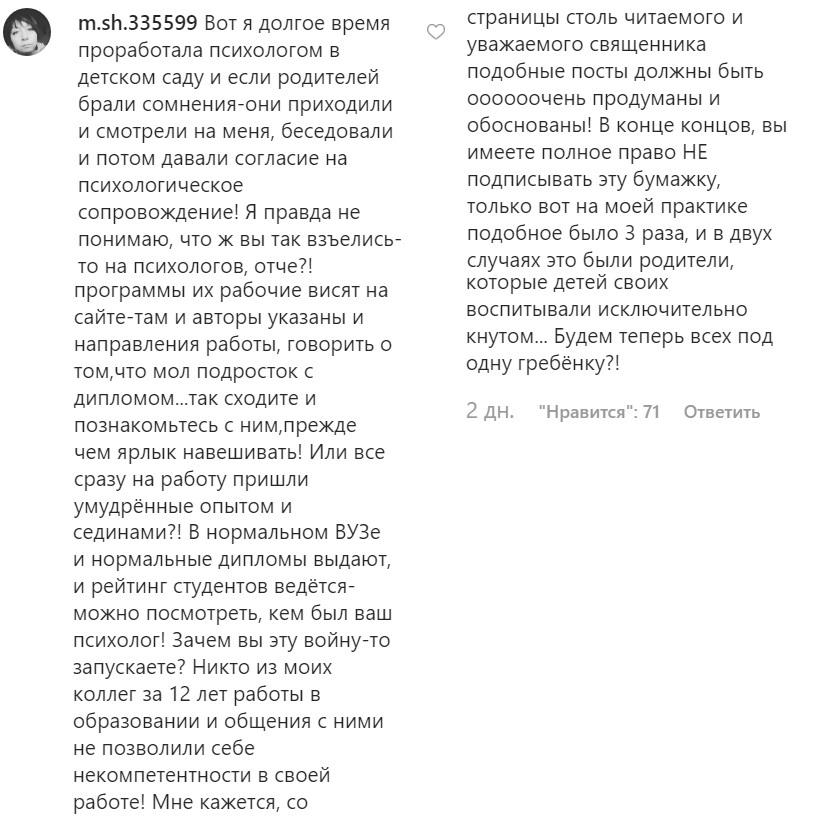 Некоторые подписчики поддержали автора поста. Но многие пользователи Сети, среди которых были и другие священники, выразили несогласие с Павлом Островским.