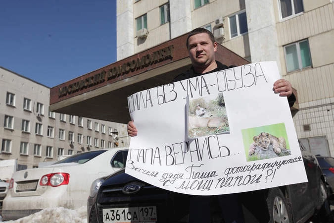 Активист попытался привлечь внимание общественности к "вопиющим случаям бесчеловечного отношения к животным". Место пикета было выбрано не случайно - главный редактор газеты Павел Гусев является президентом охотничьего общества, он, по словам протестующего, периодически совершает "трофейные обряды", убивая диких животных, и публикует фотографии с трупами зверей на сайте сообщества.