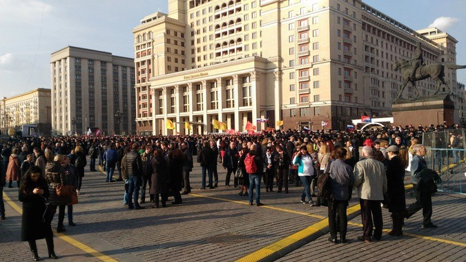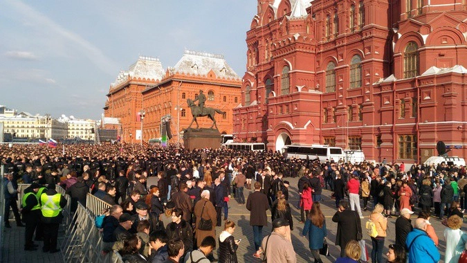 В Москве закрыты Манежная площадь, Александровский сад и торговый центр «Охотный ряд»: сотрудники полиции попросили всех посетителей покинуть места, где проходит вечер памяти. И это не удивительно, по словам корреспондента «Ридуса» и на Манежной площади, и в окрестностях, например, даже в районе Лубянки, яблоку упасть негде.