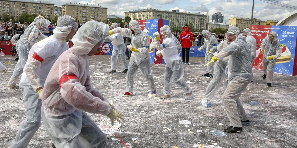 Тем временем обитатели соцсетей второй день обсуждают празднование Международного дня торта в Парке Горького, в ходе которого около 37 тысяч москвичей принимали участие в битве тортов.