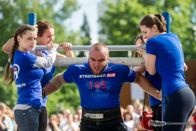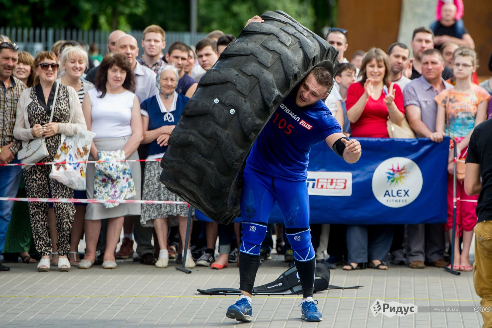 Здоровенные мужики в День России носили на руках девушек, покрышки и шары
