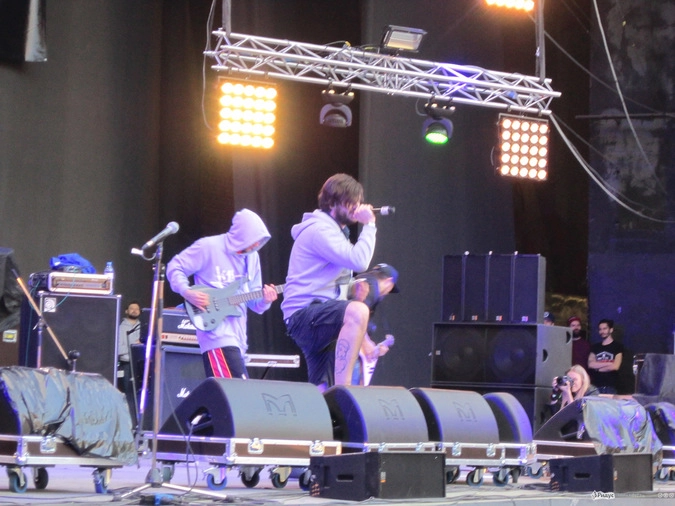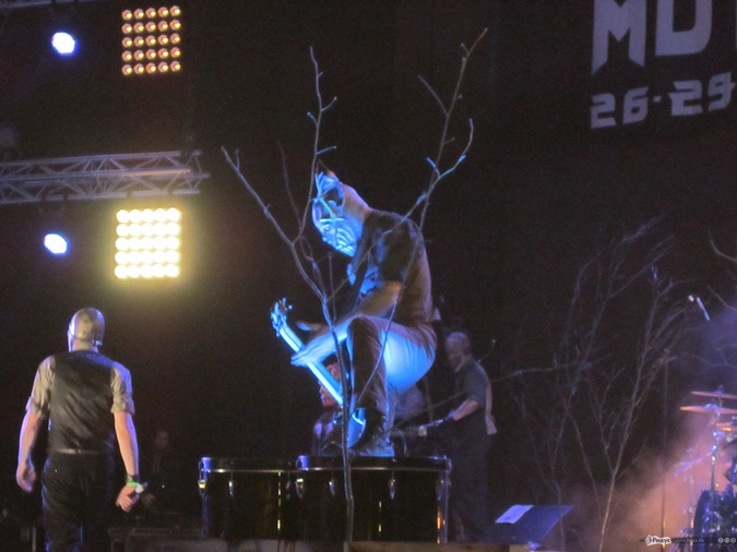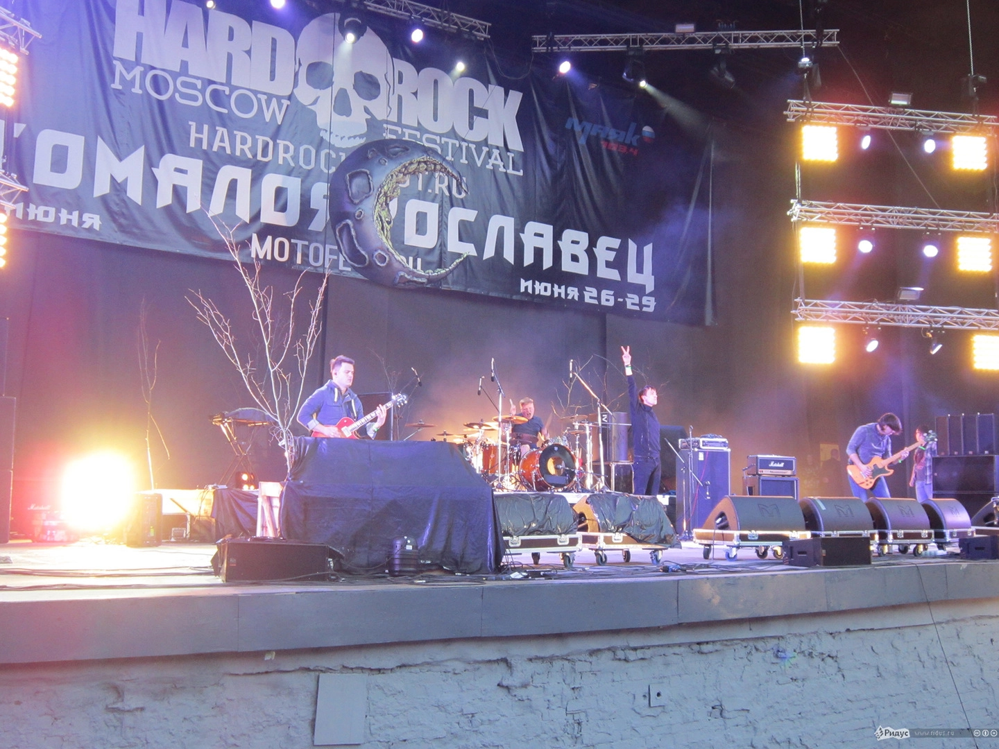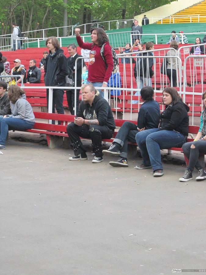 Однако за три часа до хедлайнеров в «Зеленом театре» разве что перекати поле не проносились. Единственными обитателями пустых трибун были мрачные истуканы- секьюрити, да пара подвыпивших панков. На площадке у сцены человек сто отчаянно пытались под рев Stigmata устроить себе праздник – не зря же отдали приличное количество денег за рок-фест. Но получалось не очень. Оставалась надежда, что народ подтянется на Lumen или хотя бы на Mushroomhead, но подошло всего человек сорок.