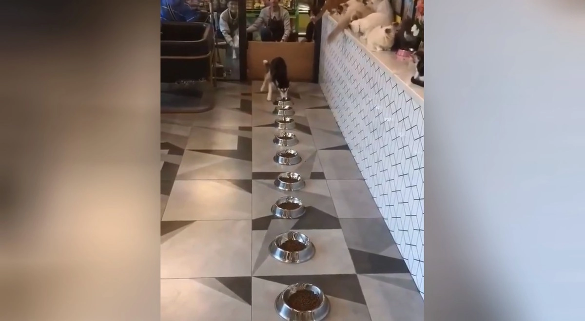 Жадный пес, полакомившийся сразу из восьми мисок, рассмешил Сеть