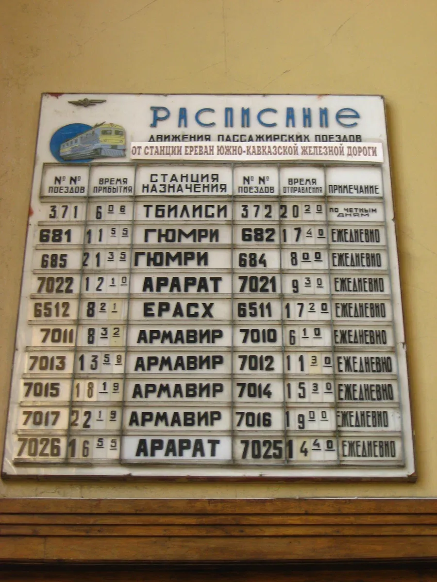 Зато на главном вокзале страны висят плакаты о былом величии, когда Ереван был Эриванью, а с этих платформ можно было укатить в Боржомъ и Карсъ.