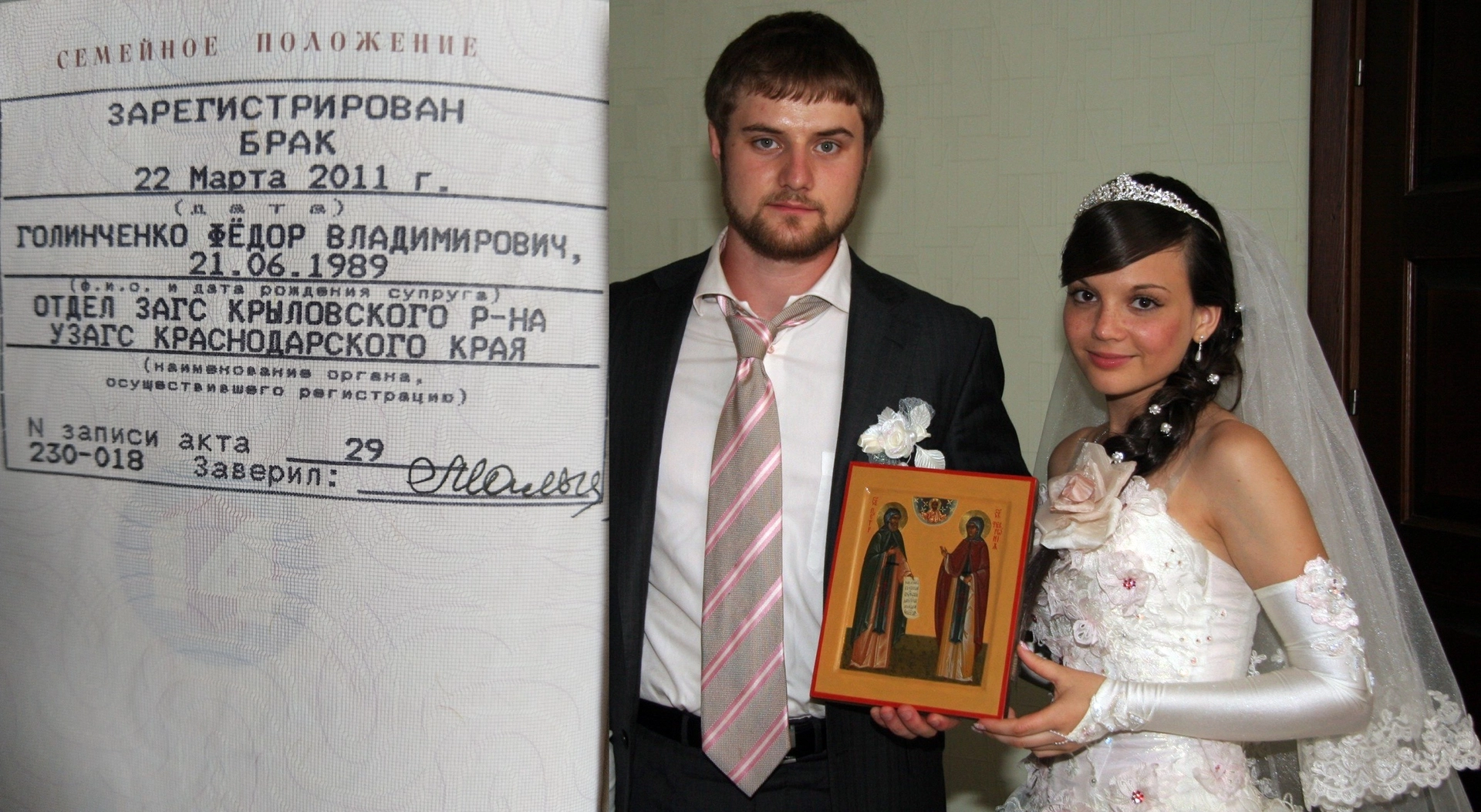 В доказательство богатой истории своих отношений с епископом Енисейским Ксения предоставила «Ридусу» снимок со своей свадьбы и фото штампа ЗАГС в паспорте, которые редакция публикует с ее разрешения. «На развод совместно мы не подавали и, соответственно, до сих пор формально состоим в браке, о чем свидетельствует штамп в моем паспорте. Мне неизвестно, решил ли он данный вопрос, как-то обойдя мое участие, или же не решил вовсе. Но никаких документов о разводе мне так и не предоставил», — пояснила она.