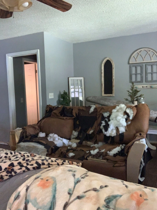 51-летняя жительница штата Теннеси Викки Шелтон была потрясена, когда 24 апреля вернулась домой и обнаружила, что ее диван полностью уничтожен, а клочья набивки валяются по всему дому. Первым делом она решила, что ее ограбили. Но уже спустя пару минут Викки осознала, что за уничтожением мебели стоит ее пес по кличке Бо.
